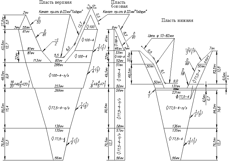 Схема оснастки трала четр. 2517-02-155 (45,3/48,0м)